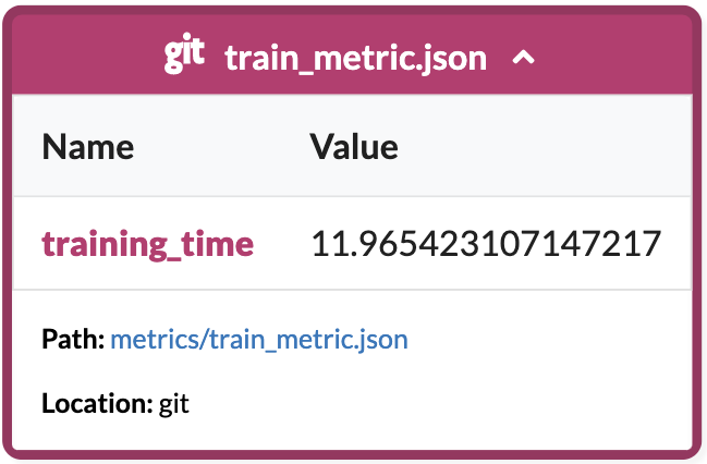 - Path to the DVC file containing the details of the command. You can click on it to see the contents of the file in your browser.